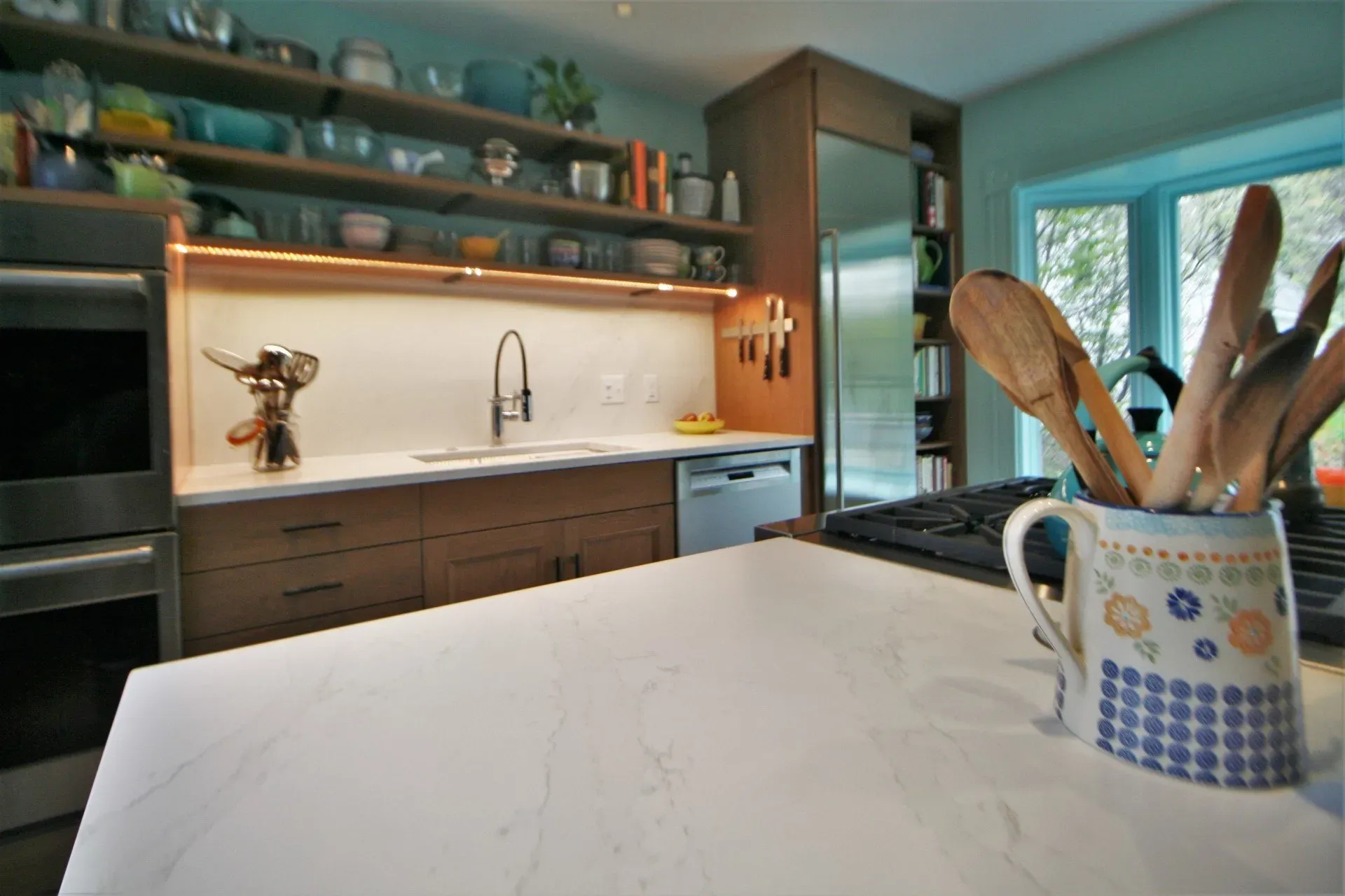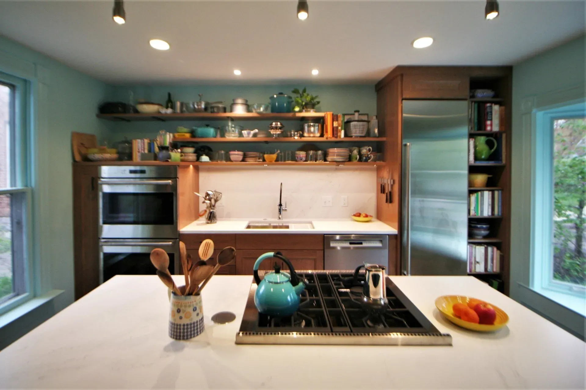 This Ann Arbor Kitchen Remodel is an amazing combination of style and function. Open Shelve Concepts and lots of counter space make this a bakers dream